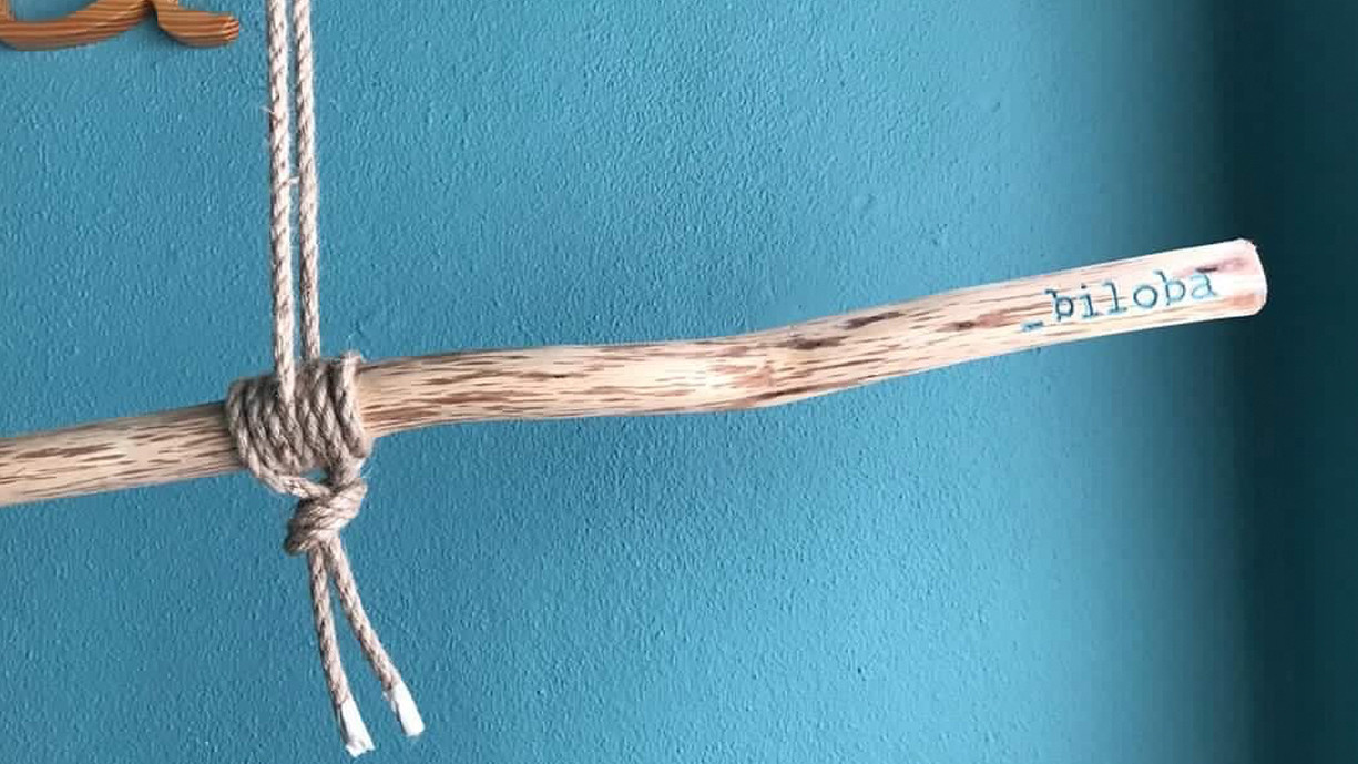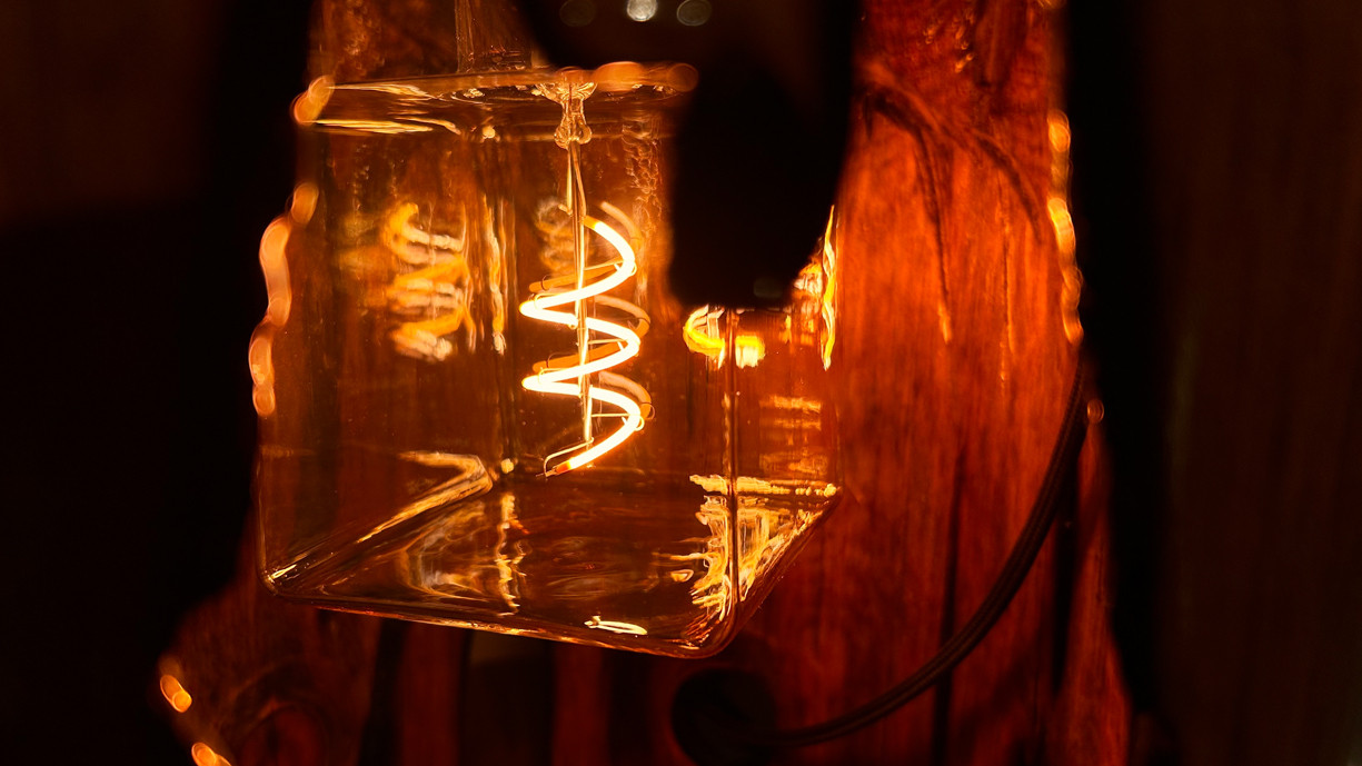 Candeeiro rústico feito de um troco de madeira
